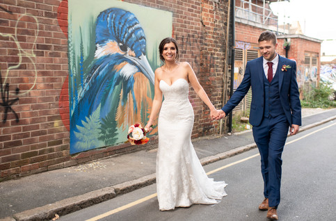 Right around the corner from the Town Hall, we went to the Peace Gardens for their group photographs which worked perfectly. After the list of group shots had been completed we then headed to Ego where they held their meal. Whilst waiting to go inside Steph and Dean wanted a photograph with an elephant statue, I started laughing. Steph told me this elephant is a Sheffield thing, and every now and then a new artist paints it. It had currently got the Arctic Monkeys album artwork on it, which I don't know how I didn't clock on sooner! Such an awesome idea to have a photograph with it to look back on. So unique, I love it.